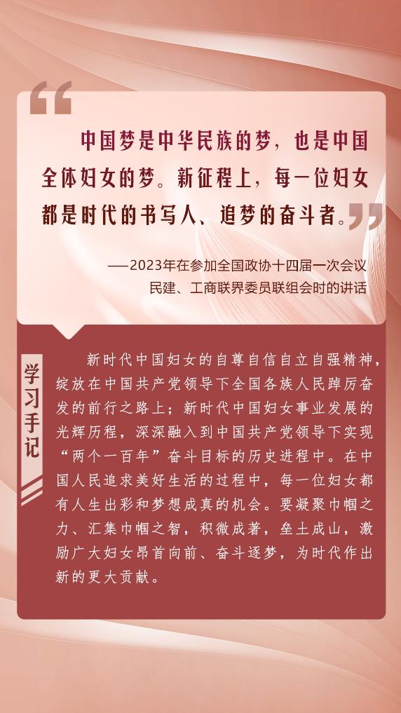黨的十八大以來,習(xí)近平總書記關(guān)心關(guān)懷婦女全面發(fā)展、謀劃部署推進(jìn)婦女工作,激勵億萬婦女在實(shí)現(xiàn)中華民族偉大復(fù)興的新征程上昂首向前、奮斗逐夢,也為加快實(shí)現(xiàn)性別平等、促進(jìn)全球婦女事業(yè)發(fā)展指引方向。