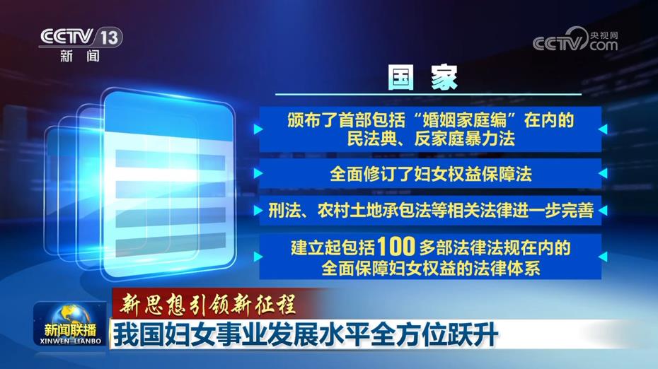 新時代,保障婦女權益作為國家意志充分彰顯,法治保障體系更加完善。國家頒布了首部包括“婚姻家庭編”在內(nèi)的民法典、反家庭暴力法,全面修訂了婦女權益保障法,刑法、農(nóng)村土地承包法等相關法律進一步完善,建立起包括100多部法律法規(guī)在內(nèi)的全面保障婦女權益的法律體系。