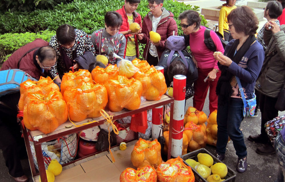 2012年12月29日,游客在廣東省梅州市選購柚子。
