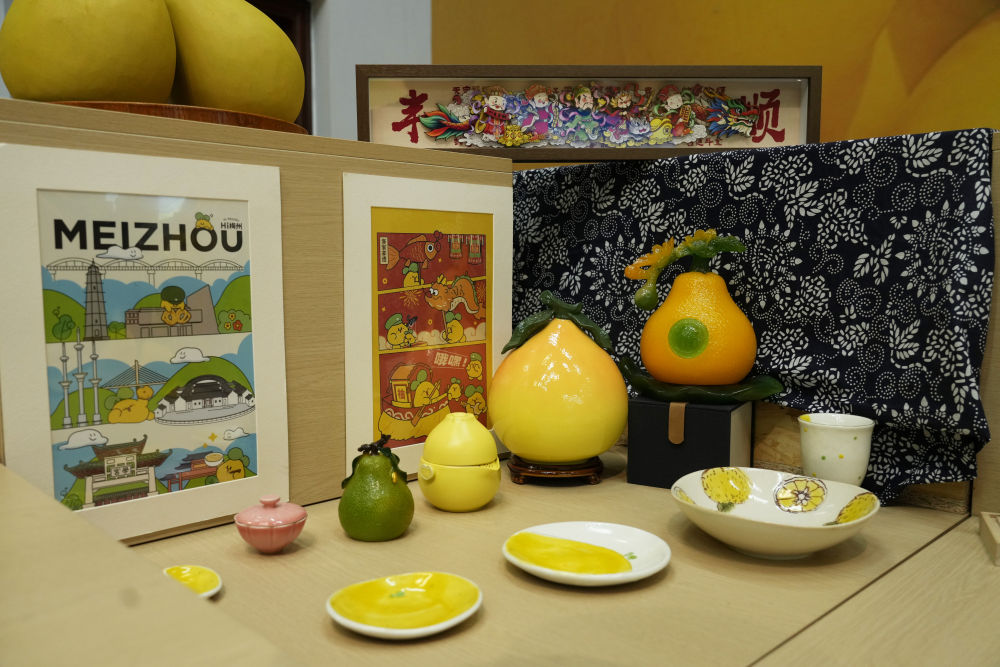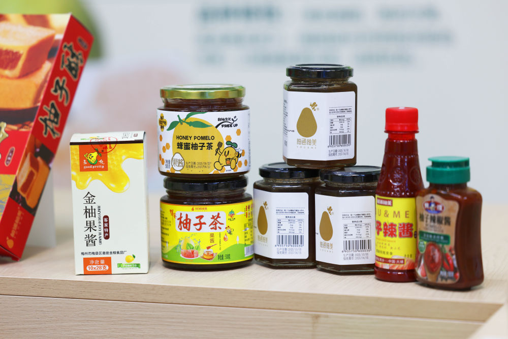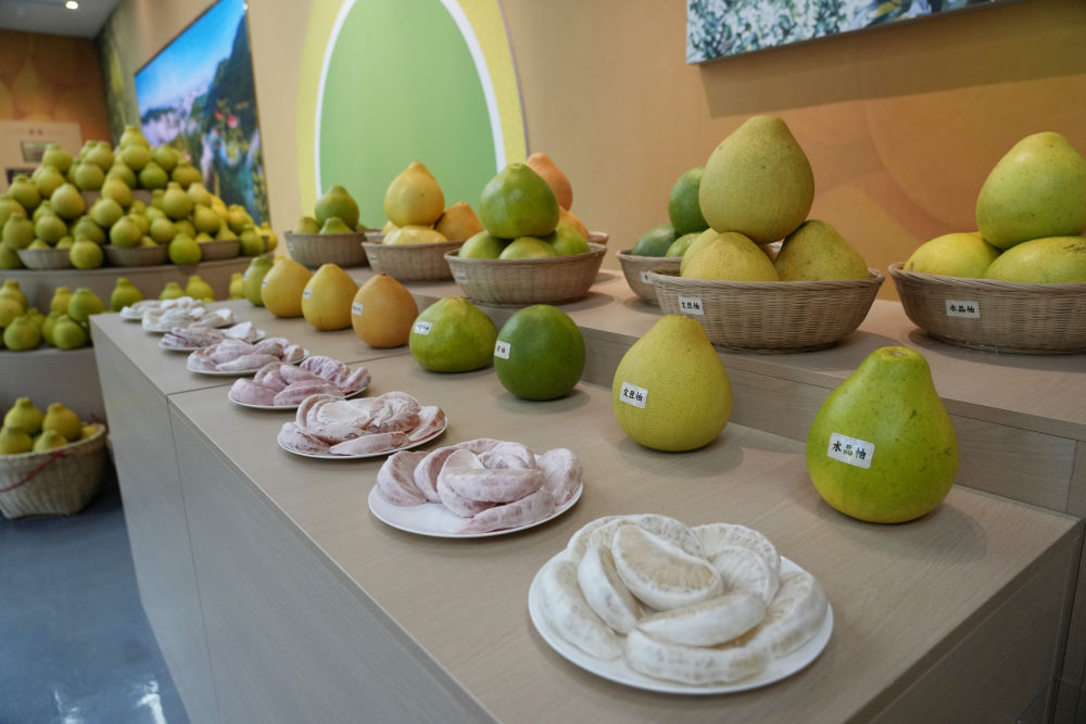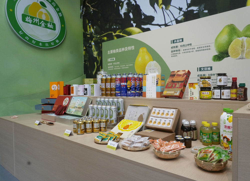2025年11月7日在梅州南福金柚種植基地拍攝的金柚及相關產(chǎn)品。