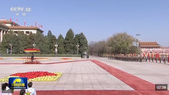 哇集拉隆功抵達時,禮兵列隊致敬。習近平同哇集拉隆功登上檢閱臺,軍樂團奏中國國歌和泰國頌圣歌,天安門廣場鳴放禮炮21響。哇集拉隆功在習近平陪同下檢閱中國人民解放軍儀仗隊,并觀看分列式。