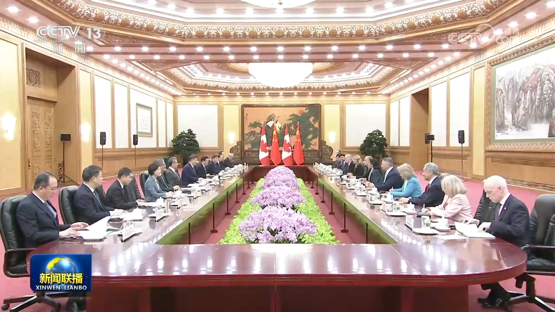 1月16日上午,國家主席習(xí)近平在北京人民大會(huì)堂會(huì)見來華進(jìn)行正式訪問的加拿大總理卡尼。