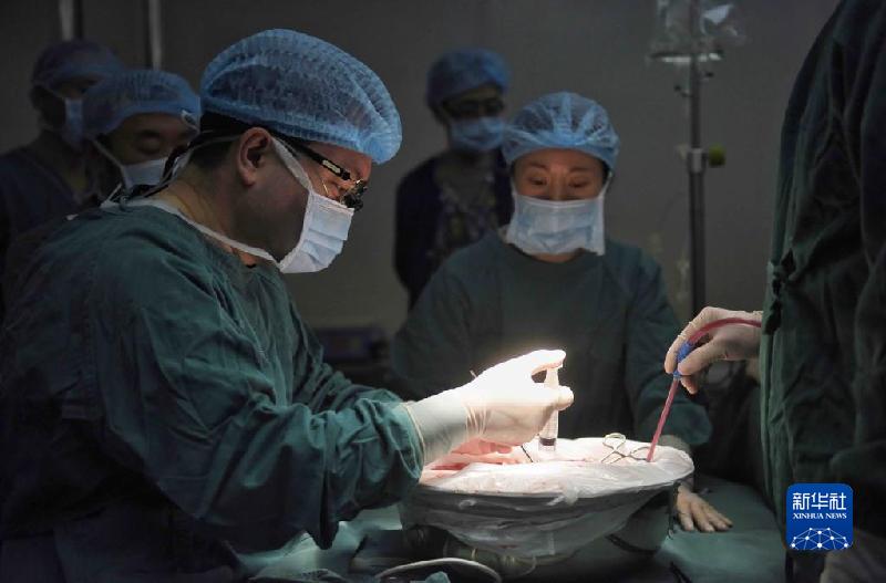 2020年1月16日,在甘孜州人民醫(yī)院,王文濤(左)進(jìn)行“體外肝切除聯(lián)合自體肝移植手術(shù)”。新華社記者 劉坤 攝