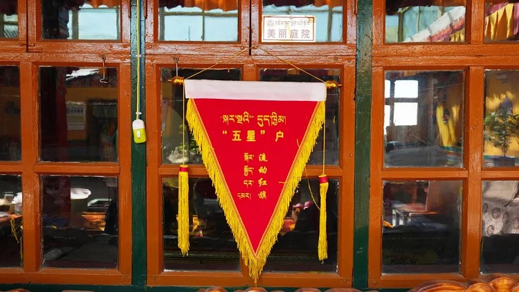 中國西藏網(wǎng)訊 在西藏自治區(qū)日喀則市桑珠孜區(qū)聯(lián)鄉(xiāng)楚西村的米普家中,一面“五星”戶的流動紅旗格外亮眼。