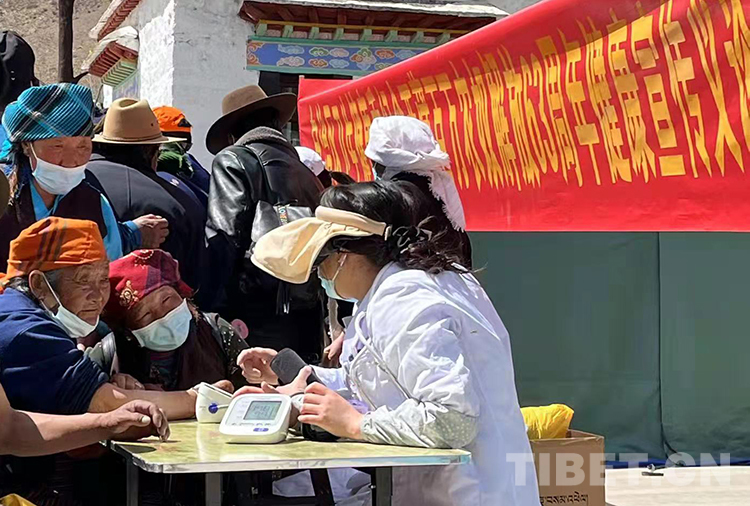 圖為西藏自治區(qū)4家自治區(qū)級醫(yī)院專家在拉薩市林周縣強(qiáng)嘎鄉(xiāng)為當(dāng)?shù)厝罕娏x診