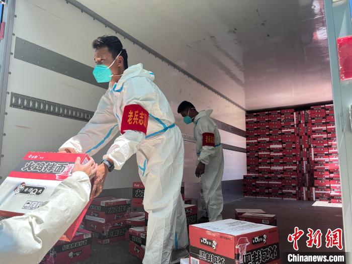 圖為正在配送物資的“老兵”志愿者?!埧藗?攝