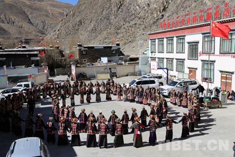 圖為2019年西藏自治區(qū)山南市瓊結(jié)鎮(zhèn)雪康社區(qū)婦女跳果諧慶?!叭恕眿D女節(jié)