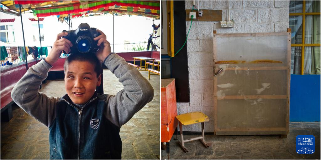 拼版照片:2013年10月9日,達(dá)瓦次仁在用相機(jī)拍照(左圖);達(dá)瓦次仁拍攝的照片(右圖)。