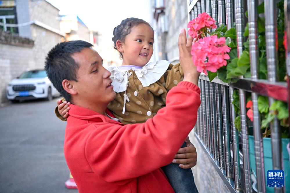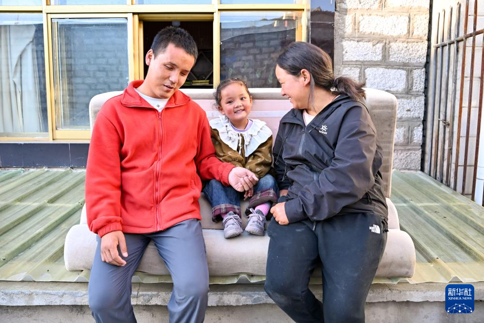 2025年10月10日,達(dá)瓦次仁在陪大女兒丹增曲音玩耍。