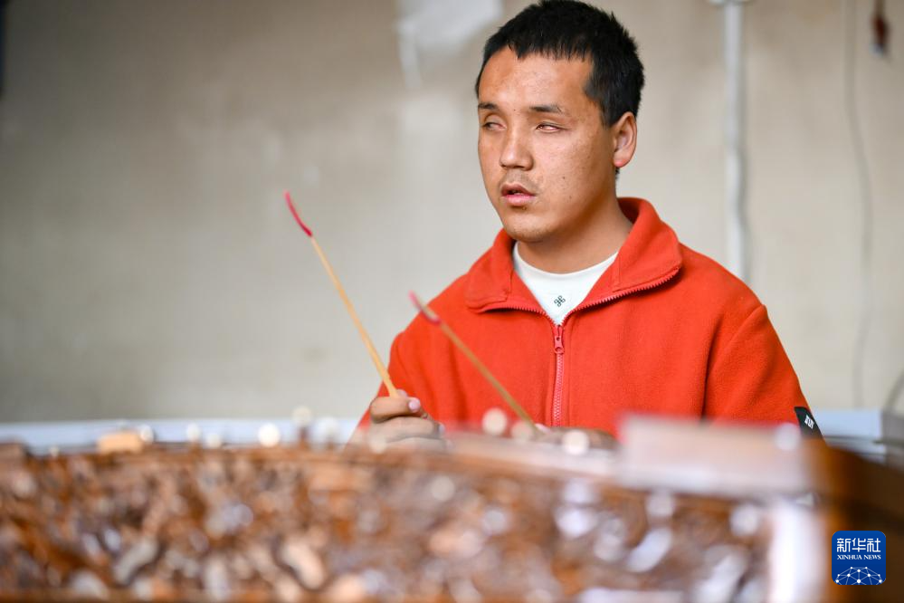 2025年10月11日,達(dá)瓦次仁在練習(xí)演奏揚(yáng)琴。