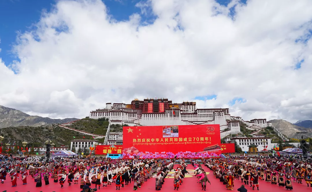 2019年9月29日上午,西藏自治區(qū)以千人鍋莊的形式,表達(dá)對(duì)黨的無(wú)限熱愛和對(duì)祖國(guó)母親的深深祝福。王淑 攝