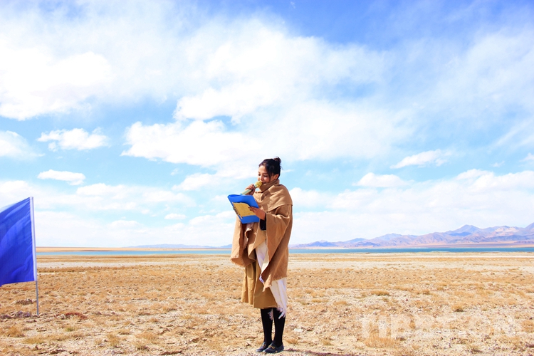中國西藏網(wǎng)訊 10月13日,懷揣著對(duì)“詩和遠(yuǎn)方”的憧憬,2019西藏首屆詩歌節(jié)活動(dòng)組一行抵達(dá)阿里地區(qū)改則縣境內(nèi)。當(dāng)日下午,在美麗的洞措湖邊,在藍(lán)天白云和牦牛的陪伴下,“行走中的詩歌節(jié)”進(jìn)行了詩朗誦活動(dòng)。