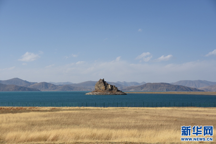 遠(yuǎn)眺羊卓雍錯馬蹄島(3月31日攝)。新華網(wǎng) 殷小燕 攝
