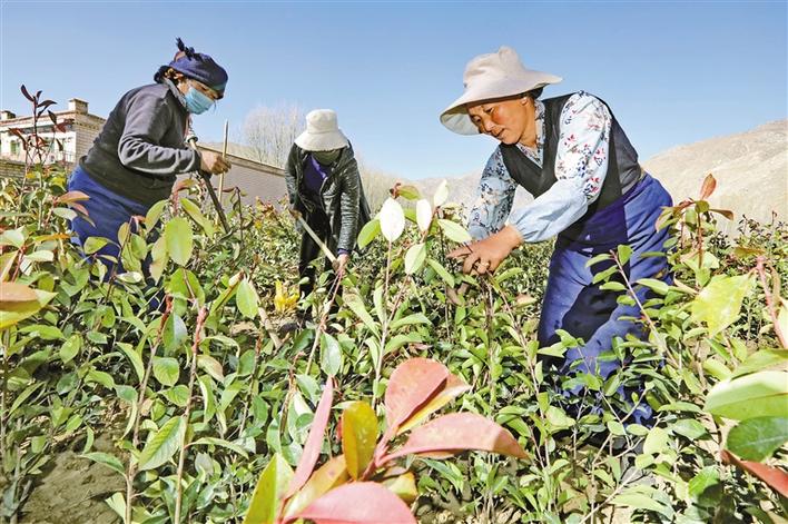 圖為拉薩市曲水縣才納鄉(xiāng)納木村村民正在房前屋后種植樹(shù)苗。