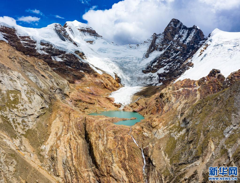 鳥(niǎo)瞰雅拉香布雪山腳下的冰川(6月4日攝,無(wú)人機(jī)照片)。新華社記者 洛卓嘉措 攝