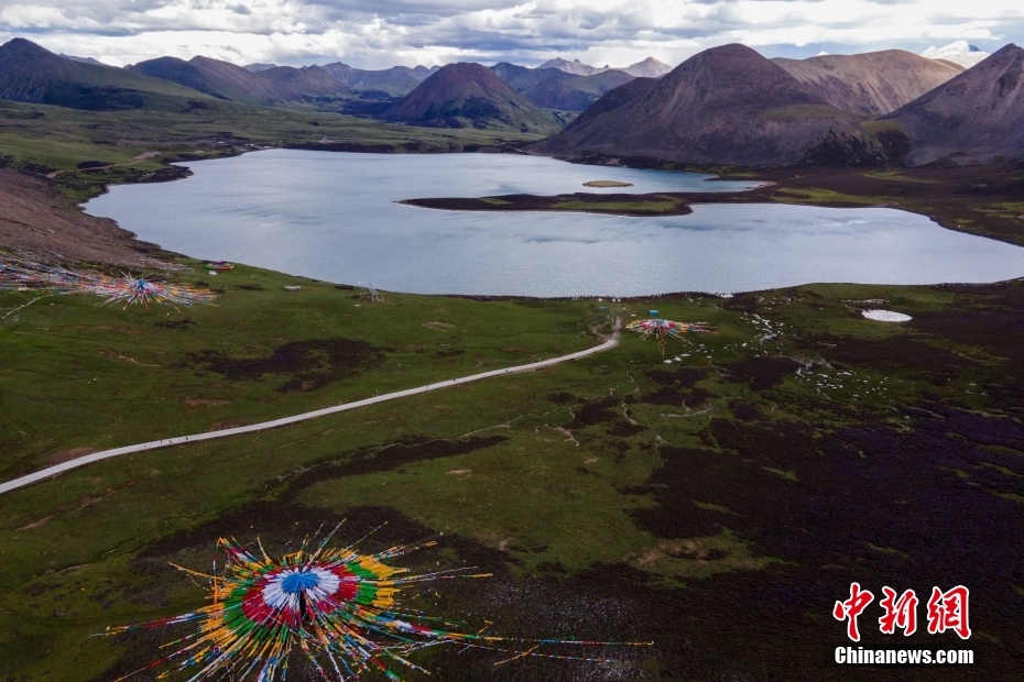 6月23日,思金拉措湖風(fēng)光秀麗。思金拉措位于西藏墨竹工卡縣日多鄉(xiāng),海拔4500多米,周邊群峰簇?fù)?,地形猶如聚寶盤,不少民眾將其稱為西藏的“財(cái)神湖”。(無人機(jī)照片) 中新社記者 江飛波 攝