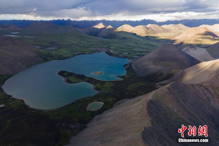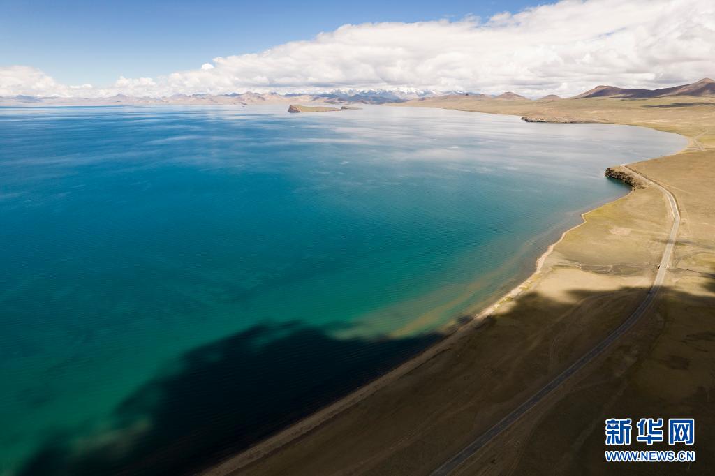 這是7月12日拍攝的普莫雍錯景色(無人機照片)。新華社記者 孫瑞博 攝