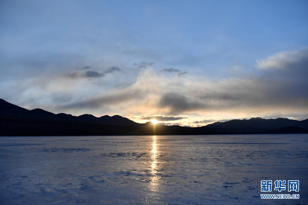 這是3月6日拍攝的日出時分的普莫雍錯。新華社記者 孫瑞博 攝