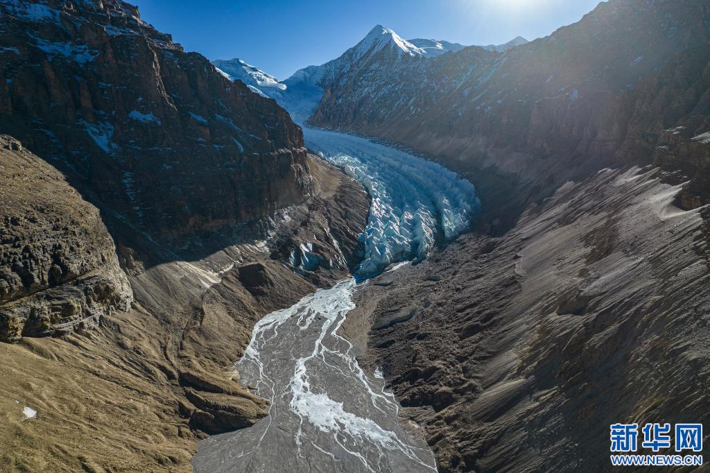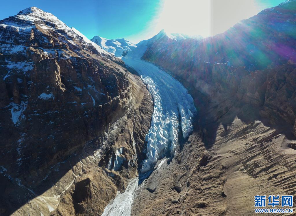 鳥瞰曲登尼瑪冰川(11月27日攝,無人機(jī)照片)。新華社記者 普布扎西 攝