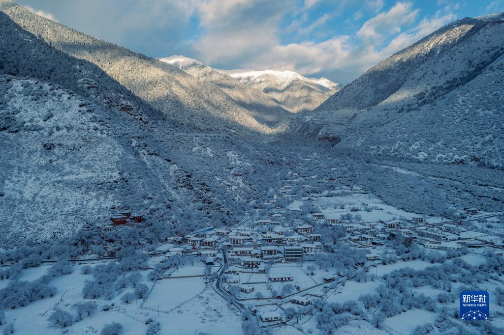 西藏林芝市米林縣派鎮(zhèn)雪景(1月14日攝,無人機(jī)照片)。新華社發(fā)(董志雄 攝)
