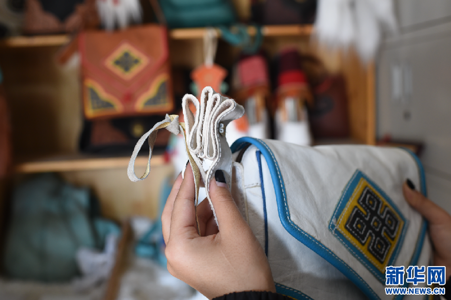 曲水俊巴民族手工皮具制作專業(yè)合作社設計的伸縮包。(2月24日攝)新華網(wǎng) 旦增努布 攝