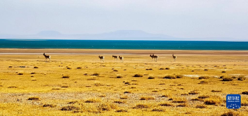 一群藏原羚在位于西藏自治區(qū)那曲市的色林錯湖邊徜徉(2022年4月13日攝,手機照片)。新華社記者 沈虹冰 攝