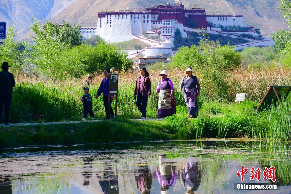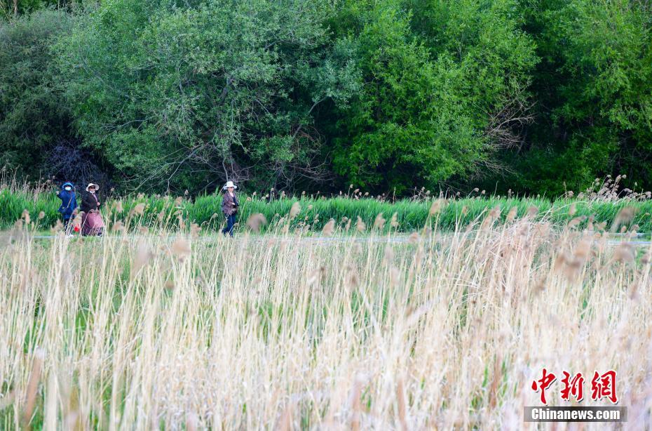 5月24日,拉薩市民沿拉魯濕地步道觀賞游玩。拉魯濕地國(guó)家級(jí)自然保護(hù)區(qū)位于西藏拉薩市北郊,被譽(yù)為“拉薩之肺”。 中新社記者 貢嘎來(lái)松 攝