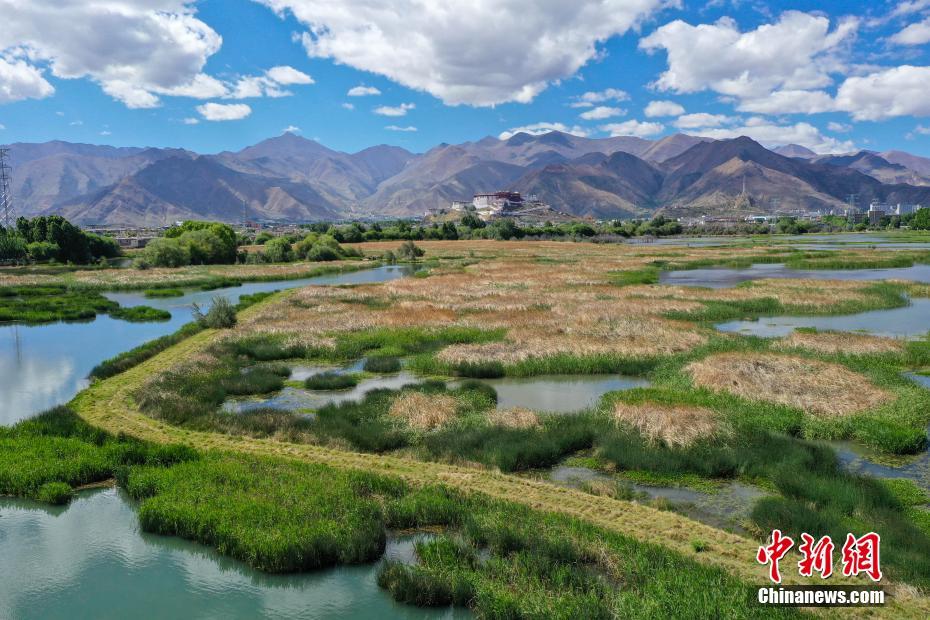 5月24日,從拉魯濕地遠(yuǎn)眺布達(dá)拉宮。拉魯濕地國(guó)家級(jí)自然保護(hù)區(qū)位于西藏拉薩市北郊,被譽(yù)為“拉薩之肺”。 中新社記者 貢嘎來(lái)松 攝