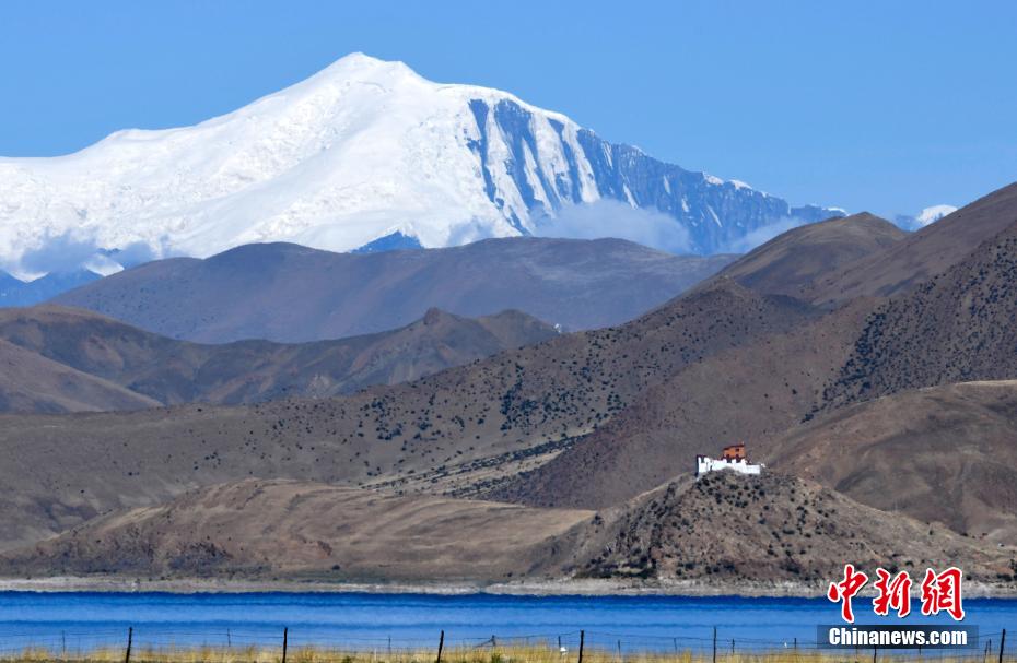 站在直拉山口俯瞰羊卓雍措,深邃藍(lán)的湖水似鑲嵌山間的藍(lán)寶石,與遠(yuǎn)處的庫(kù)拉崗日雪山形成一幅壯美圖卷。圖為羊卓雍措。 李林 攝