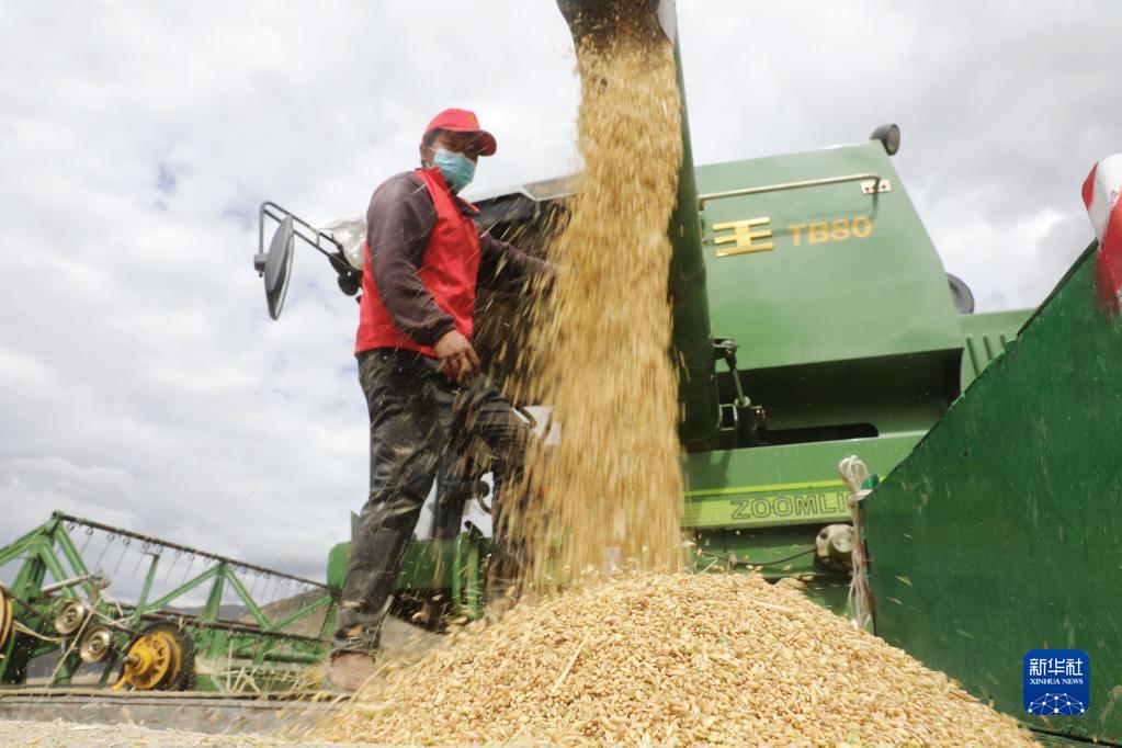 目前,西藏各地進(jìn)入秋收時(shí)節(jié)。西藏拉薩市墨竹工卡縣農(nóng)民在積極防疫的同時(shí),抓緊收割青稞,確保顆粒歸倉(cāng)。
