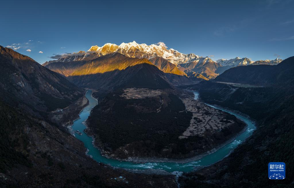 流淌在南迦巴瓦峰腳下的雅魯藏布江(11月28日攝,無人機(jī)合成照片)。新華社發(fā)(董志雄 攝)
