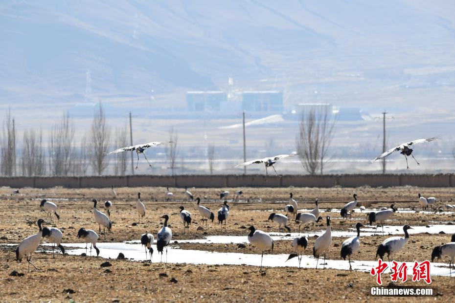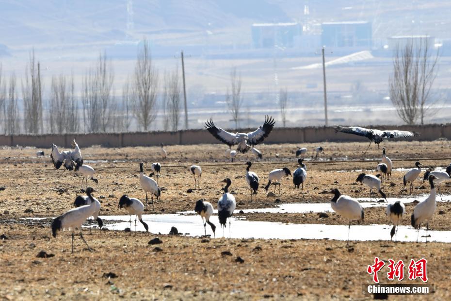 每年的10月底,成群的黑頸鶴飛到西藏拉薩市林周縣越冬,在拉薩市林周縣周邊的湖泊濕地度過5個(gè)月的“閑云野鶴”生活,次年三四月份再飛向藏北草原繁殖。黑頸鶴是世界上唯一一種高原鶴類。具有足長、喙長、頸長的典型涉禽類特征,適合在沼澤地里行走。黑頸鶴的頸、尾為黑色,體羽為灰白色。黑頸鶴是國家一級保護(hù)動(dòng)物。目前,每年到林周縣越冬的黑頸鶴已達(dá)2000只左右。圖為黑頸鶴在林周境內(nèi)的農(nóng)田里覓食、嬉戲。 貢嘎來松 攝