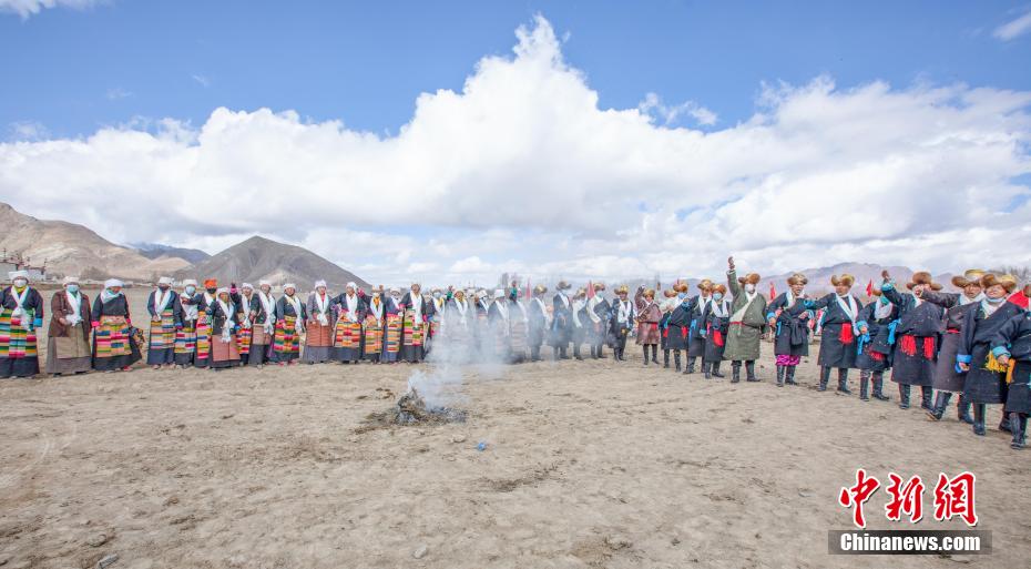 圖為拉薩市林周縣朱加村,村民穿著節(jié)日盛裝舉行傳統(tǒng)春耕儀式。林周融媒 供圖
