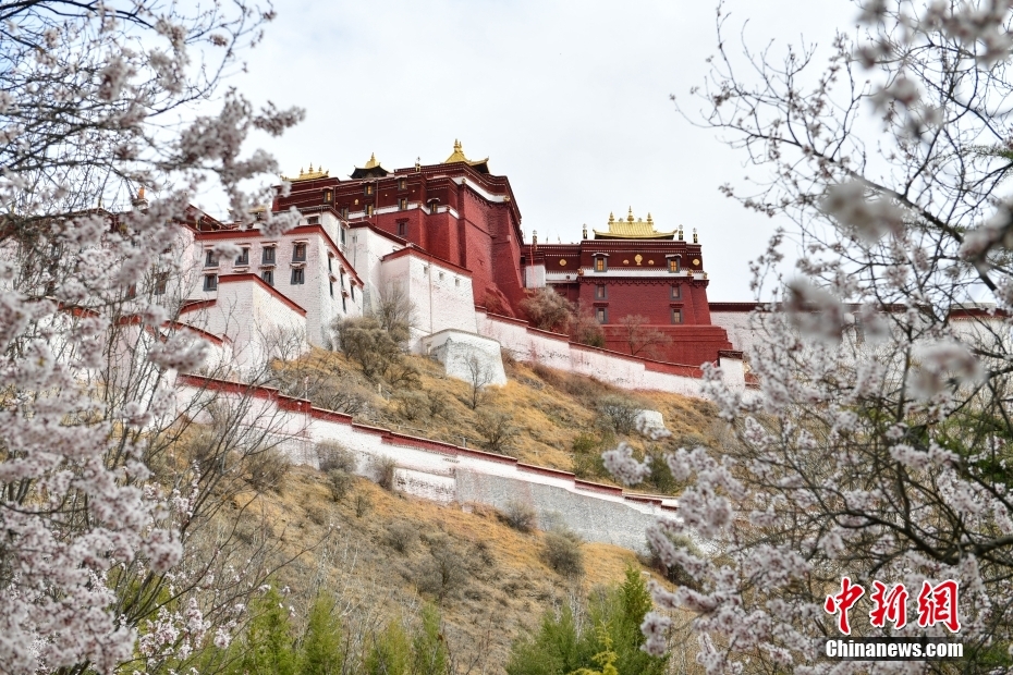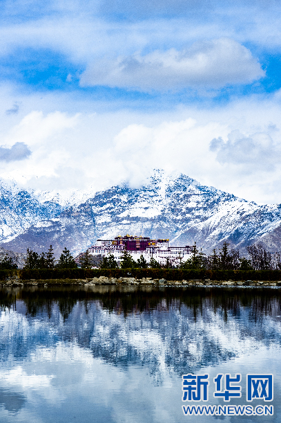 3月30日,在拉薩市南山公園拍攝的雪后布達(dá)拉宮。新華網(wǎng) 柑丹鴦琦攝