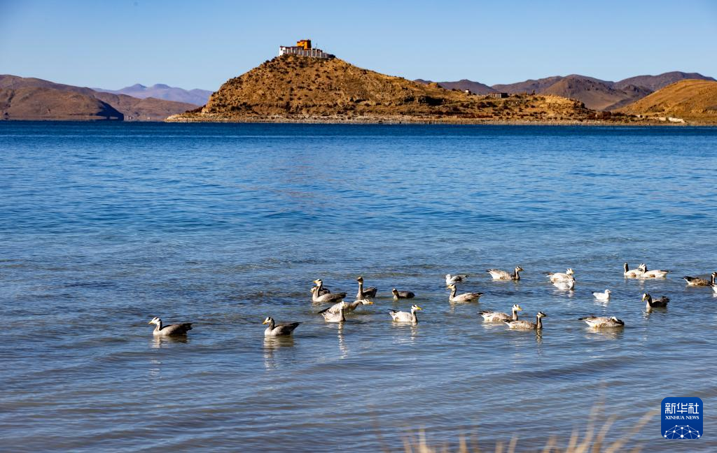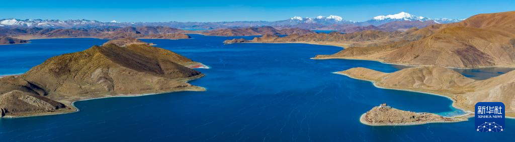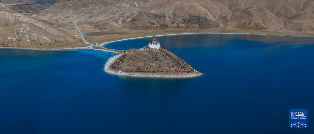 這是10月25日拍攝的羊卓雍錯(cuò)和日托寺。新華社記者 姜帆 攝