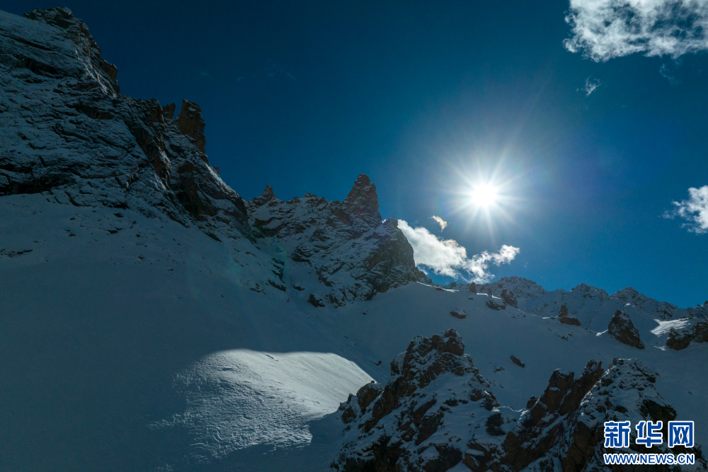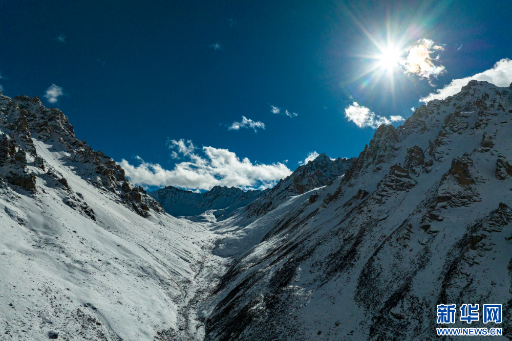 12月10日,從嘉乃玉錯(cuò)湖邊拍攝的雪山(無人機(jī)照片)。新華網(wǎng) 旦增努布 攝