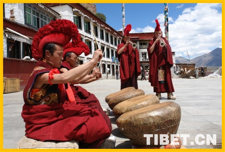 圖為直孔噶舉派音樂(佛教音樂)。藏族傳統(tǒng)音樂特色鮮明,品種多樣,包括民間音樂、宗教音樂、宮廷音樂三大類。目前,18個(gè)傳統(tǒng)音樂類非物質(zhì)文化遺產(chǎn)項(xiàng)目被列入國家和西藏自治區(qū)級(jí)名錄。