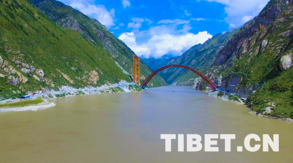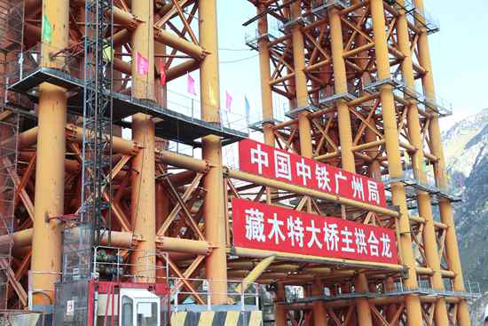 藏木特大橋位于西藏加查縣安饒鎮(zhèn)桑加峽谷內(nèi),地處海拔3350米的山地,主橋橫跨雅魯藏布大峽谷,水深66米,大橋采用430米中承式鋼管混凝土拱,拱高112米,是首座跨過(guò)雅魯藏布江的鐵路橋梁。