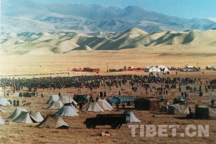 圖為渴盼得到十世班禪大師摩頂?shù)娜罕姳燃缃吁?,匯聚草場,恭候那一幸福的時(shí)刻。
