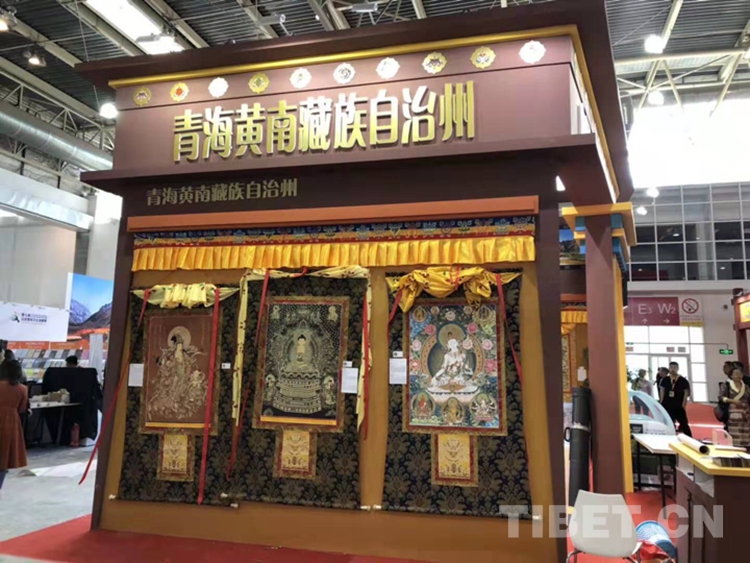 圖為青海省黃南藏族自治州非遺文化展區(qū)展出的熱貢唐卡 攝影:格桑嘉措