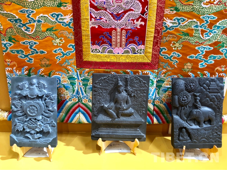 圖為展出的澤庫縣和日石刻藝術 攝影:格桑嘉措