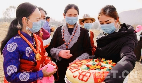 現(xiàn)在全國上下都在努力抗擊疫情,羅漢堂村的村民也為此特意準(zhǔn)備了一份“武漢加油”為主題的餅子,致敬那些前線的抗疫英雄。(中國西藏網(wǎng) 記者/楊加才讓)
