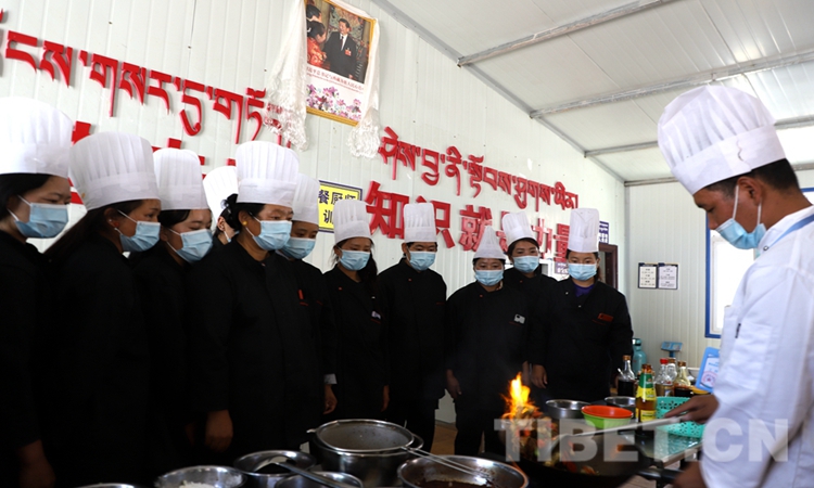 圖為卡若區(qū)就業(yè)創(chuàng)業(yè)培訓(xùn)中心的學(xué)員在學(xué)習(xí)烹飪 攝影:賈華加