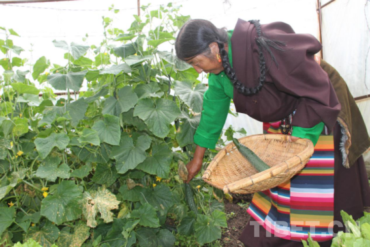 中國西藏網(wǎng)訊 8月7日,臨近中午,四川省甘孜藏族自治州理塘縣濯桑鄉(xiāng)康呷村曲西阿婆拔完露天菜地的雜草,順便到蔬菜棚摘了四根黃瓜和幾窩白菜。
