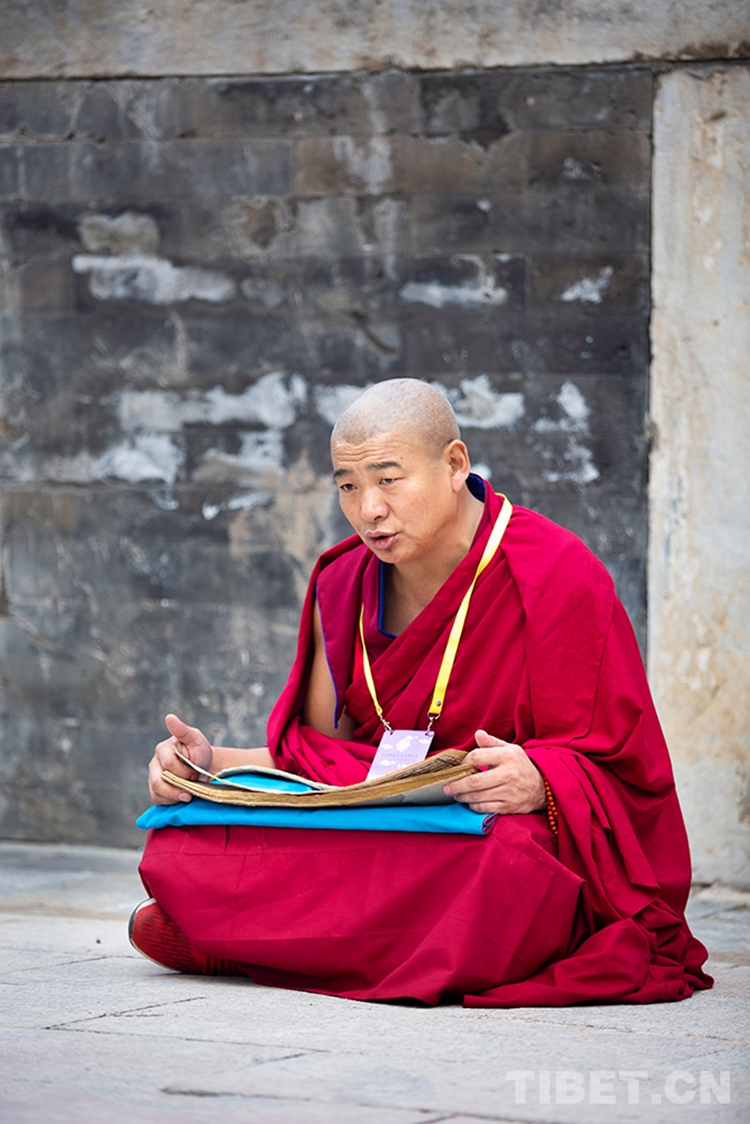 圖為即將參加2020年藏傳佛教第十六屆“拓然巴”高級學(xué)銜畢業(yè)考試辯經(jīng)考試的學(xué)僧專注誦經(jīng) 攝影:許娜