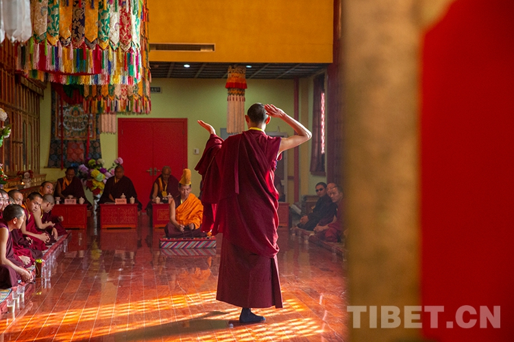 圖為藏傳佛教寧瑪派辯經(jīng)考試現(xiàn)場。