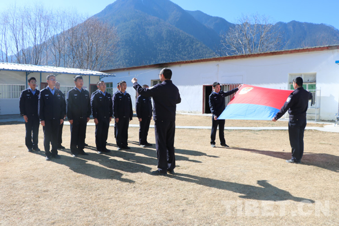 圖為林芝邊境管理支隊(duì)機(jī)關(guān)舉行升旗儀式 攝影:劉安震鏞
