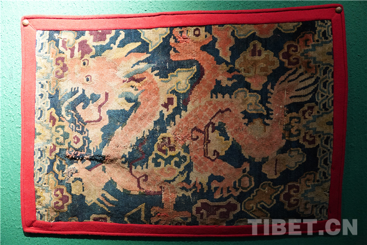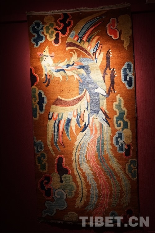“本次展覽的藏毯,色彩搭配和編織都是技藝一絕,尤其是圖案寓意深遠(yuǎn),最具特色的是龍身鳳尾的龍鳳呈祥花紋非常精美。”介觀藝術(shù)中心的創(chuàng)始人徐應(yīng)龍介紹,“上半身為龍身,下半身為鳳尾,體現(xiàn)了多民族的文化交往交流交融?!?/p>