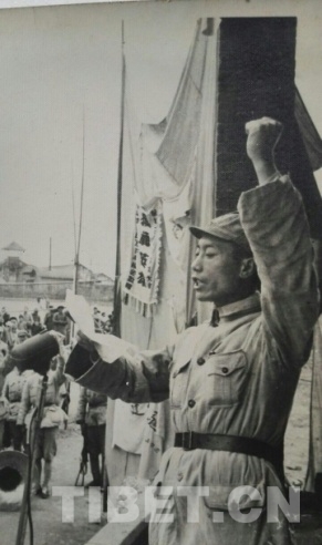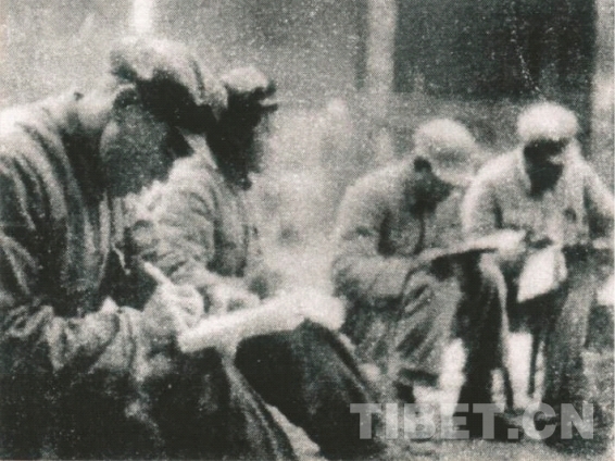 圖為1953年,苗丕一書記帶領(lǐng)波密分工委同志學習藏語