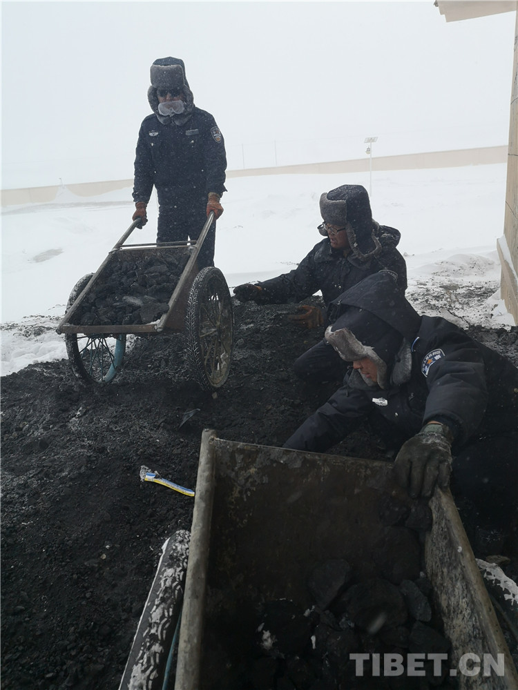 圖為邊境民警們在2019年春節(jié)前遭遇暴雪時運(yùn)煤